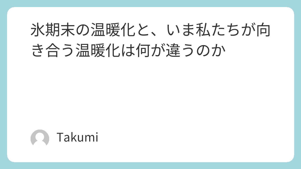 氷期末にも大きな温暖化はあったが、数千年スケールで進んだ変化と、150年ほどで急上昇する現代を同列には置けない。
